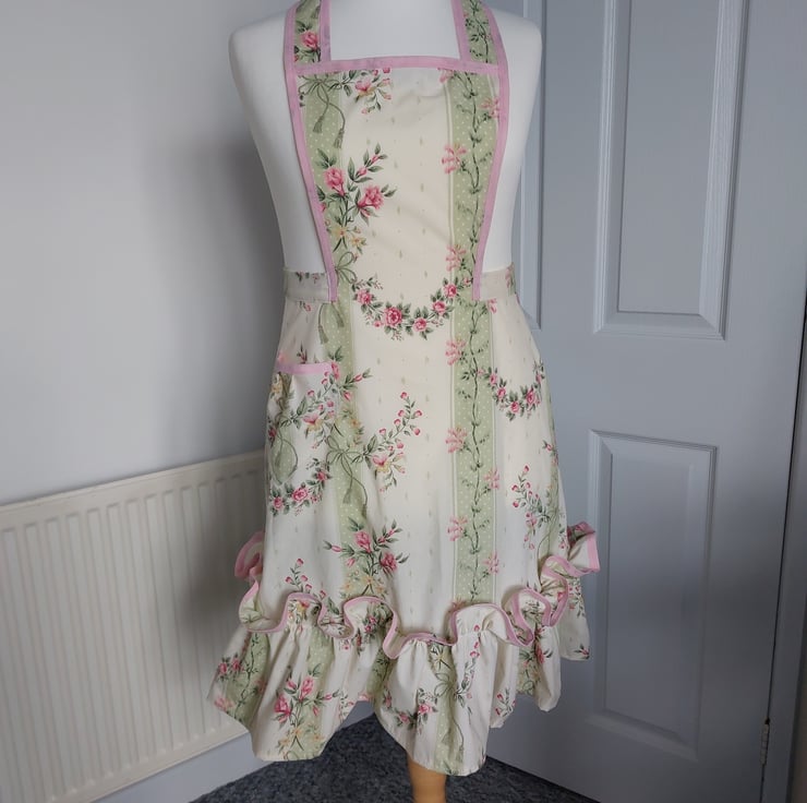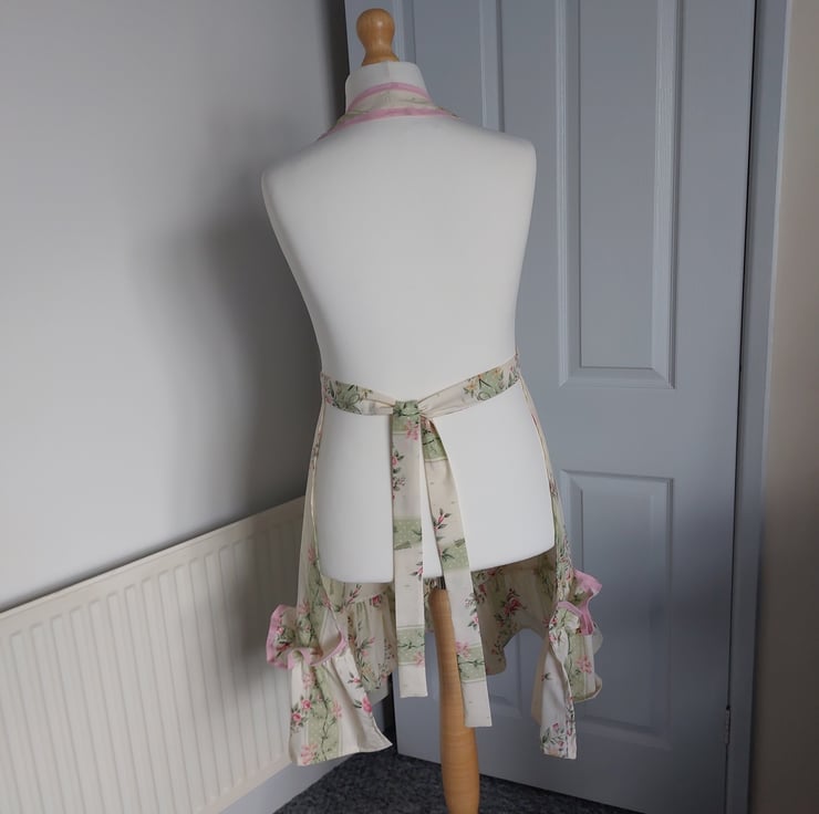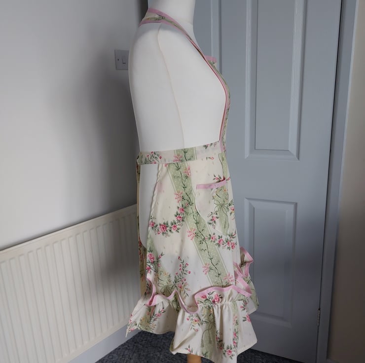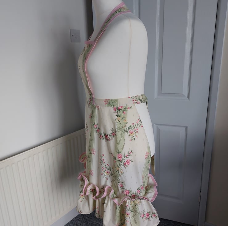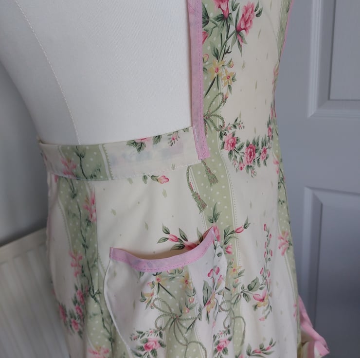 Handmade using a vintage floral fabric and a pink cotton bias trim