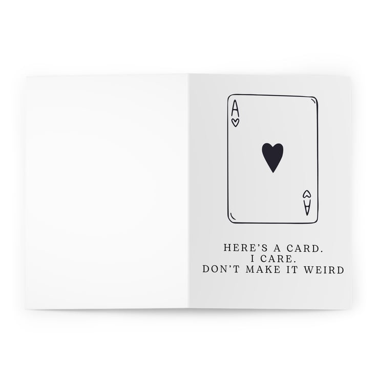 Front message: “Here's a card. I care. Don't make it weird. ”
