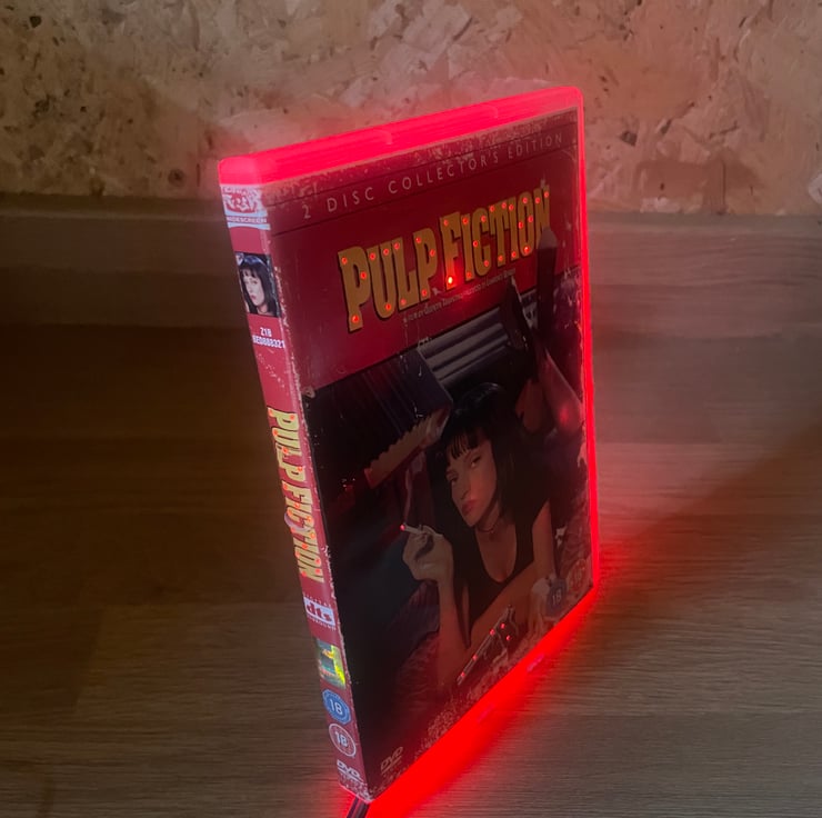 The Neon DVD Light is an Upcycled Product which Converts DVD Cases into Glowing Colorful Nightlights are Battery Powered.A Display Stand is Also included.A Unique and Original Concept the NeonGlowDvd can add something a little different to a Collection or as unique gift.