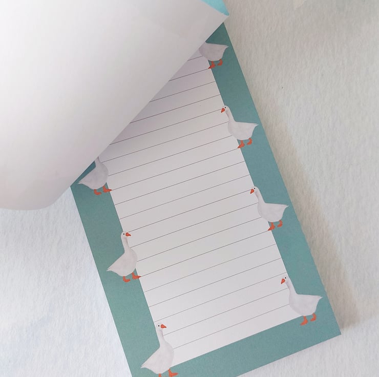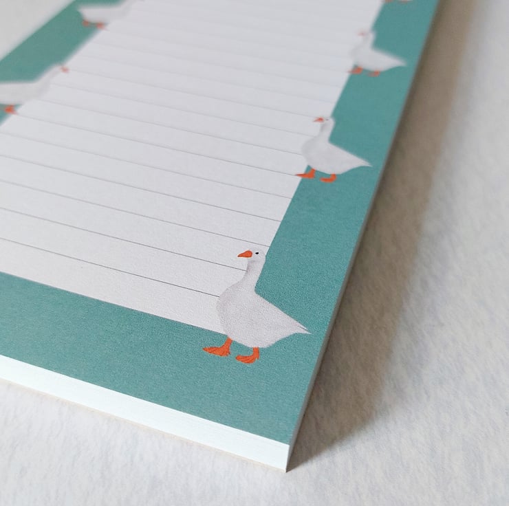 Delightful goose design which is repeated on each page, joyfully illustrated by me