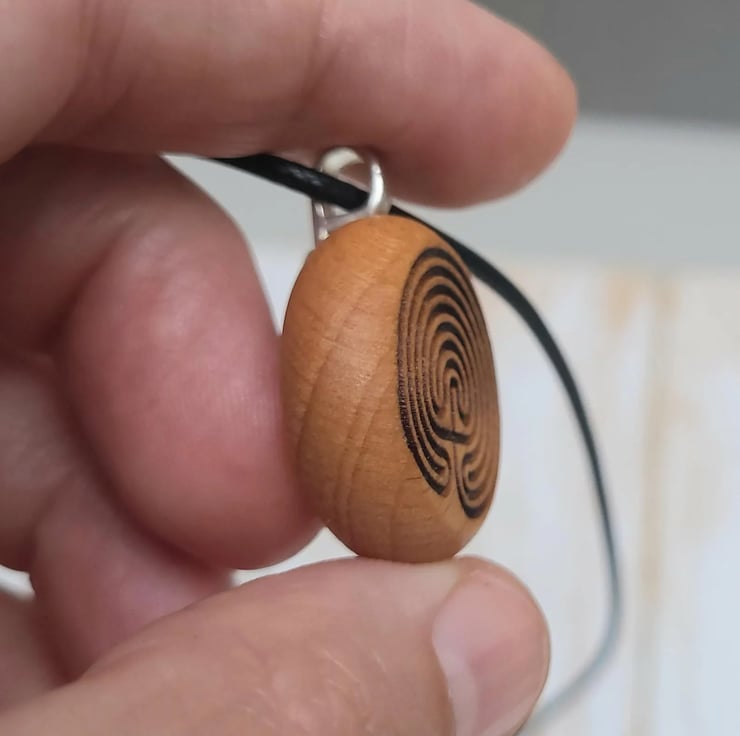 Laser engraved on solid untreated beechwood, this 25mm pendant features the ancient labyrinth — a sacred spiral path used in witchcraft and pagan traditions for meditation, grounding, and inner discovery.
