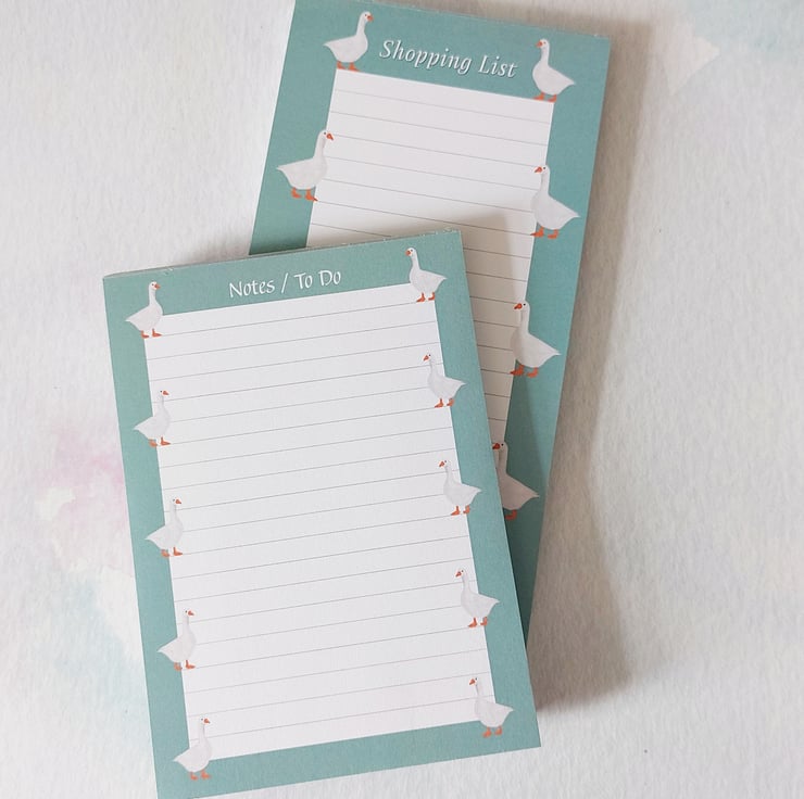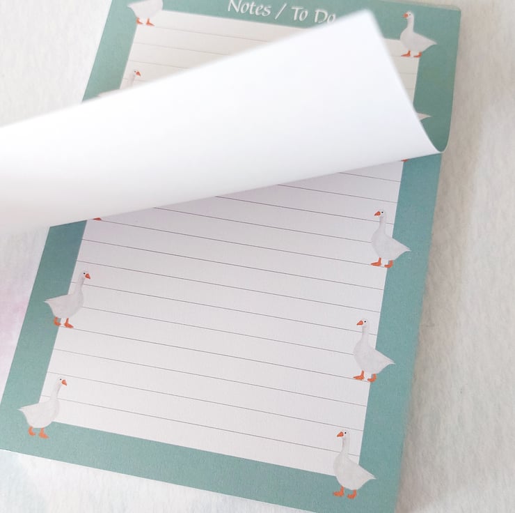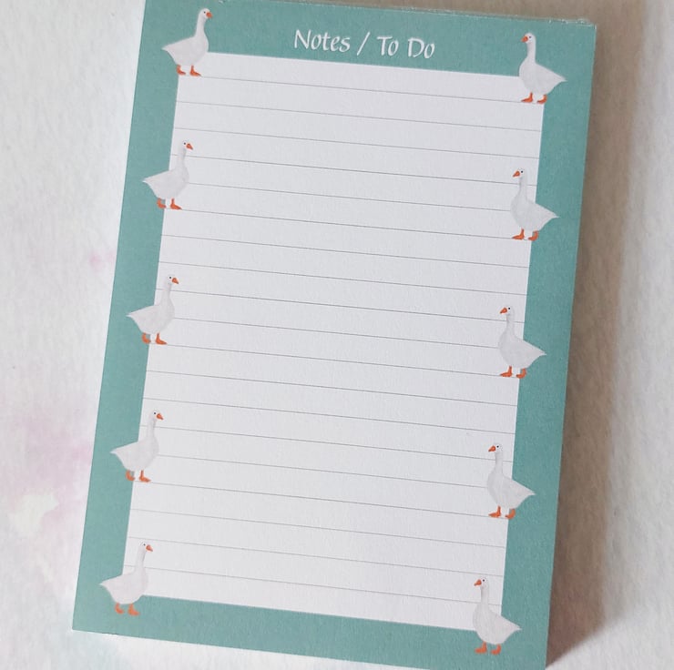 "Gracie the Goose" A6 Notepad/To Do List, featuring my own original illustration of a delightful goose.