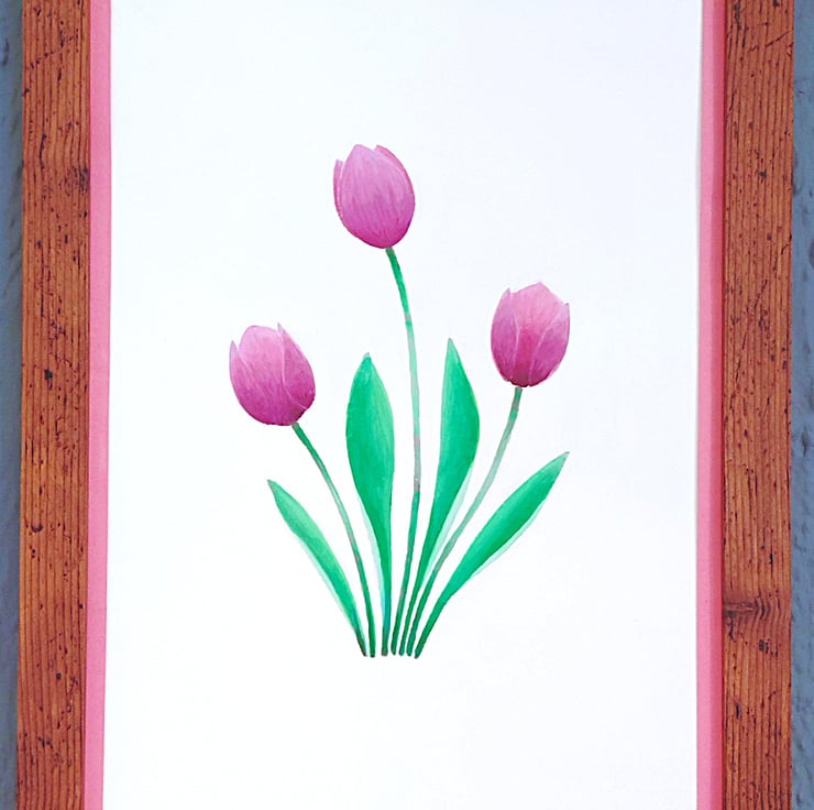 Framed high-quality coloured A3 print of my painting of purple tullips on a white background with a hard backing. The print comes finished with a pink border. Framed with an expensive Styrene Protective Perspex (which has same clarity of glass) ready to hang. Choose from three different types of frame; black, oak or dark oak(see images). Colours of print and border may differ slightly due to computer/phone settings. All purchases delivered within 7-10 working days.