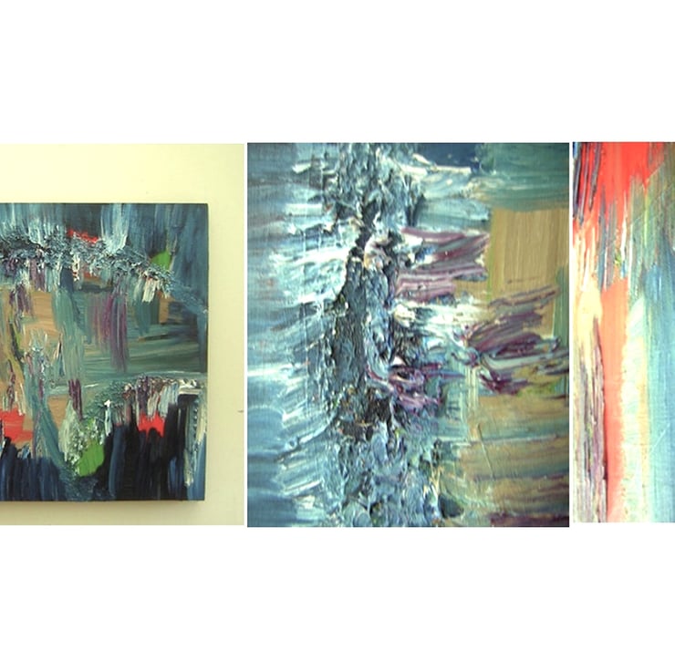 With my paintings, I am inspired by taking a small section of something that I find beautiful and enlarging it on the canvas or paper. It would always be something that would be overlooked, for example a small section of a reflection of something or an area whereby the eye would not focus on. This painting was inspired by nature at dusk