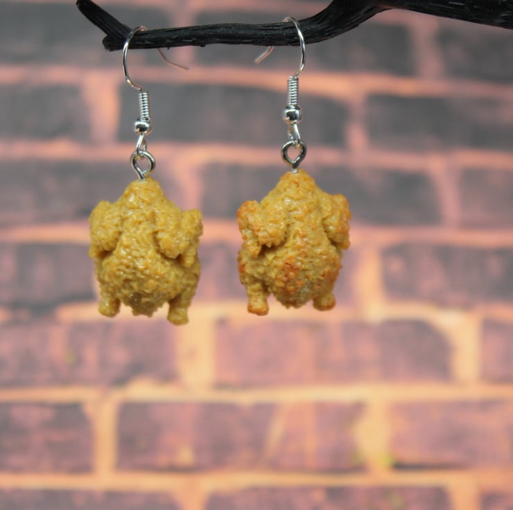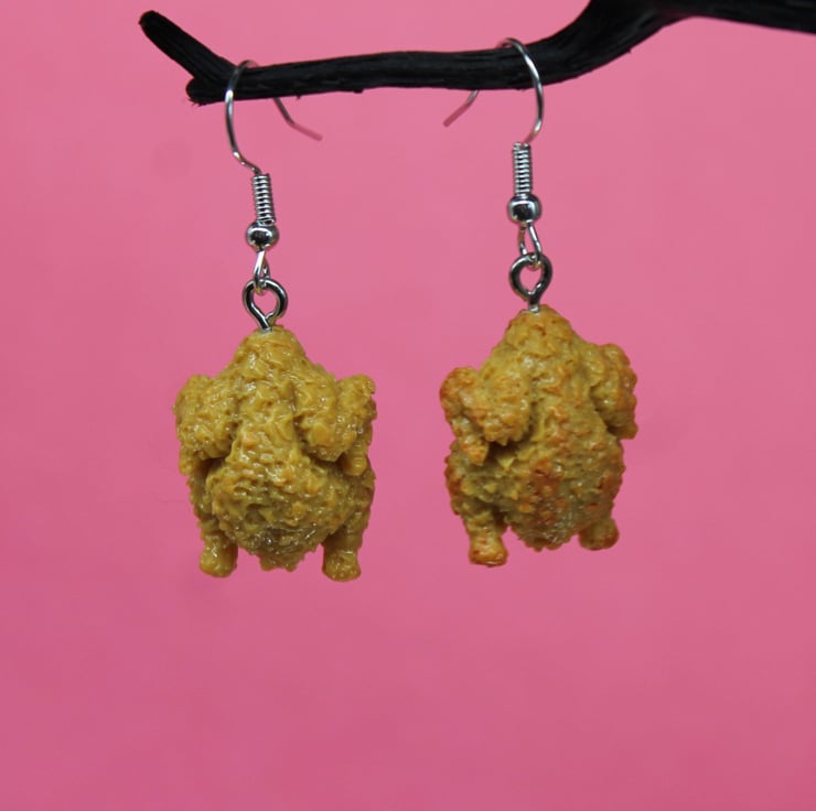Each pair features two plump, golden chickens, perfectly fried and ready to dangle with pride from your lobes. Lightweight, wiggly, and guaranteed to raise eyebrows and smiles.
