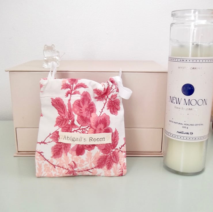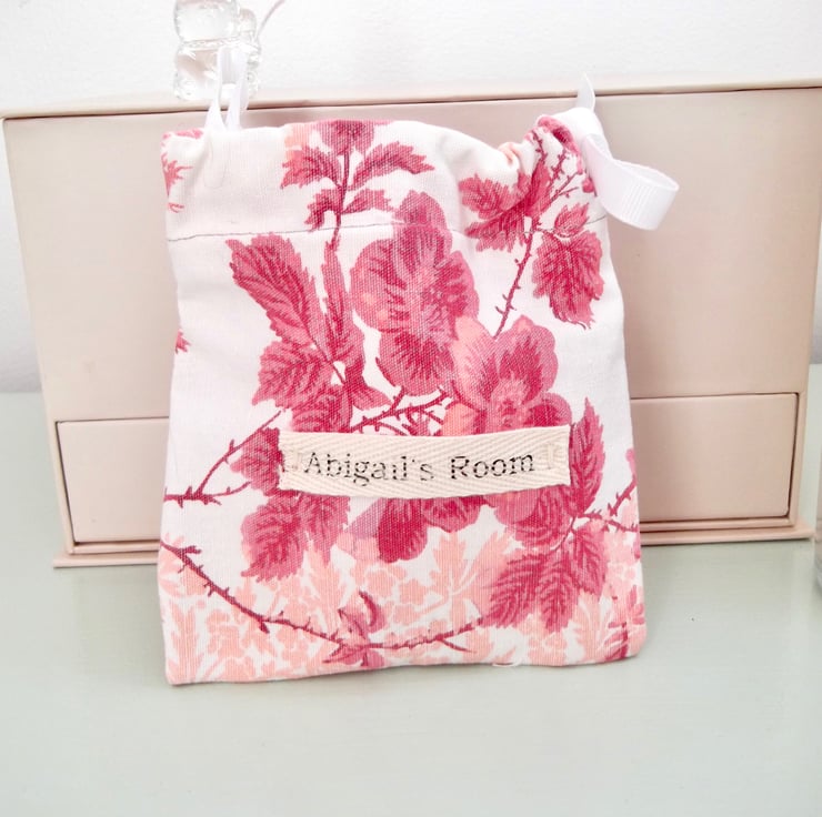 Vintage Pink Floral Cotton Lavender Bag, Drawstring bag with lavender