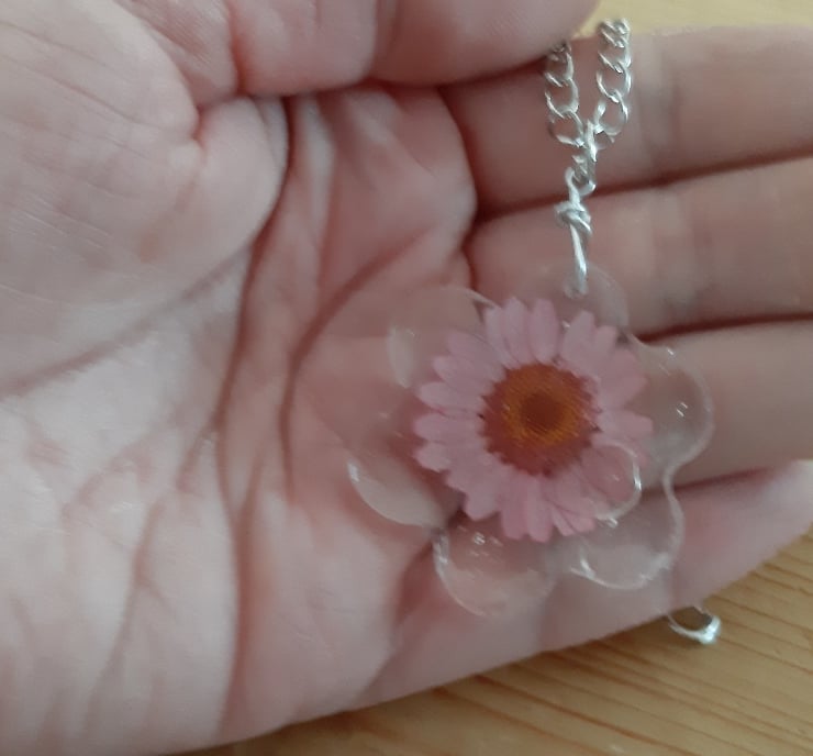 This eye-catching resin pendant, with dried flowers set inside, was made by carefully building up layers of UV resin and curing one layer at a time. It's perfect for the summer months and ideal for everyday wear.