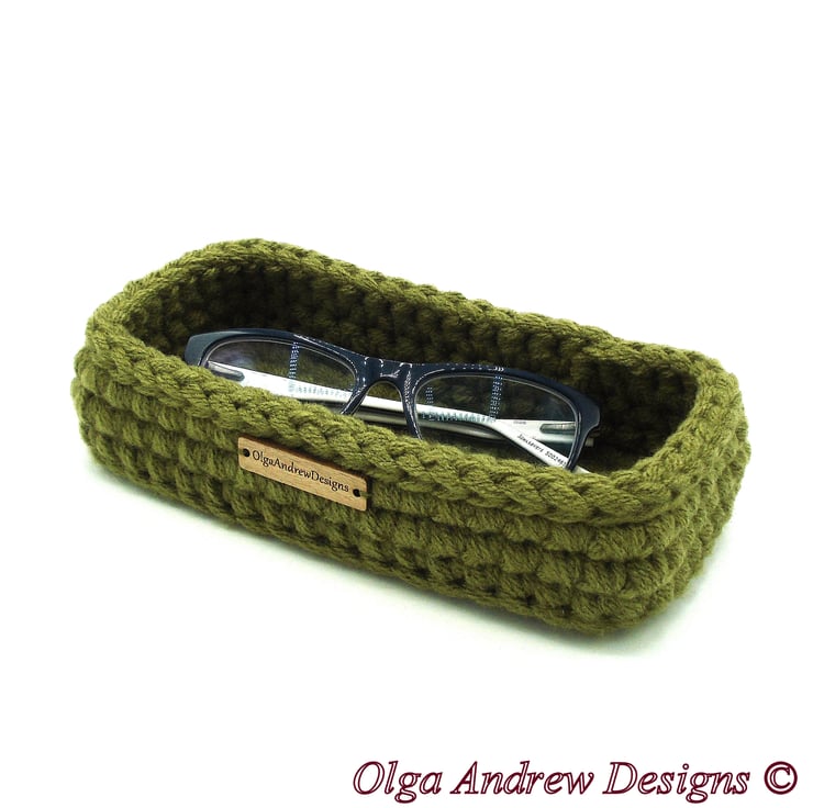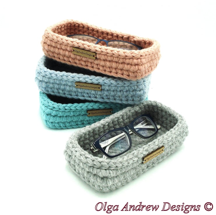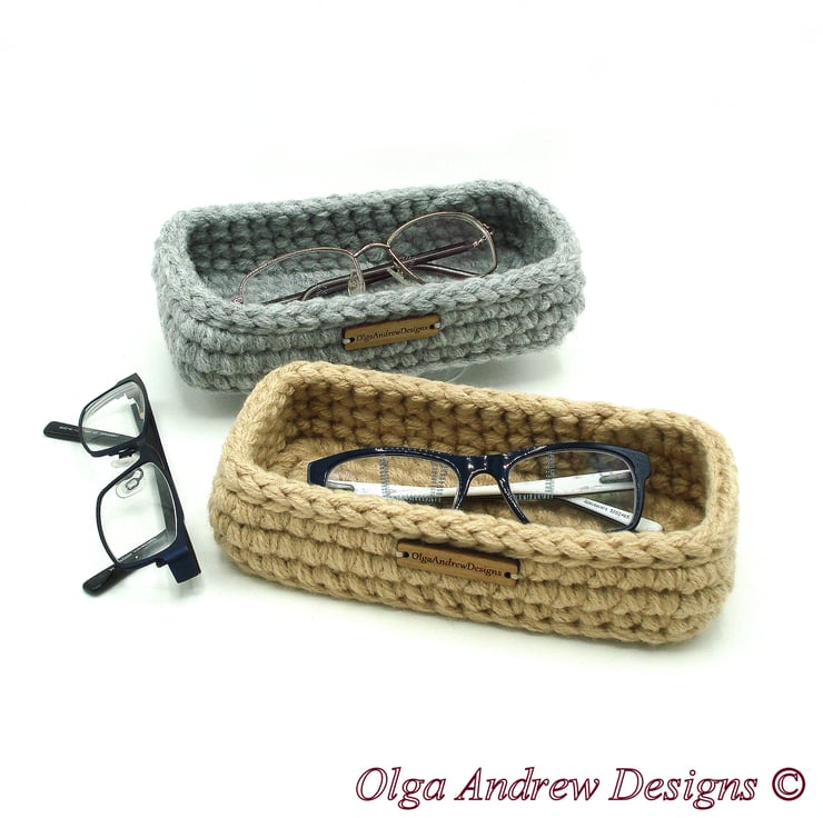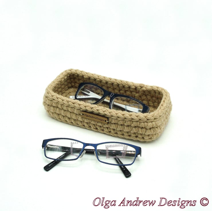 This hand crocheted soft horizontal eyeglass holder could be very useful to keep your glasses safe and handy. The sides of the eyeglasses tray are very sturdy, strong and dense. This eyeglass storage is very practical, and you can use this glasses holder also as a nightstand or desk organizer. This soft glasses tray would also be a great gift for mum, dad, friends and colleagues.