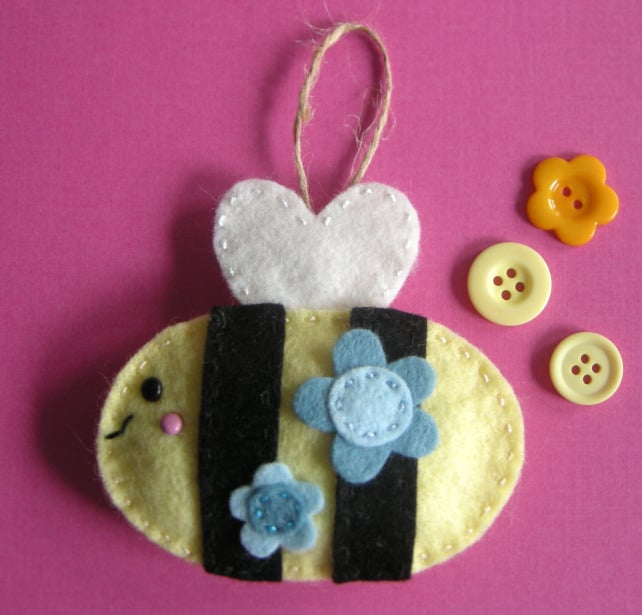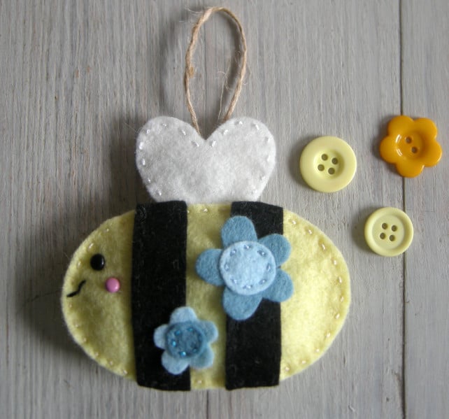 craft kit, sewing kit, make a Beth bee felt decoration, bee decoration,