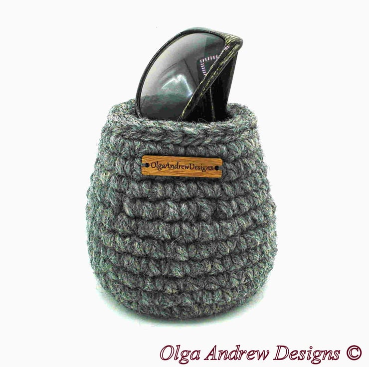 This hand crocheted round small eyeglass holder stand could be very useful to keep your glasses safe and handy. The sides of the eyeglasses stand are very sturdy, strong and dense. This eyeglass storage is very practical, and you can use this soft glasses holder also as a nightstand or desk organizer. This vertical eyeglasses holder would also be a great gift for mum, dad, friends and colleagues.