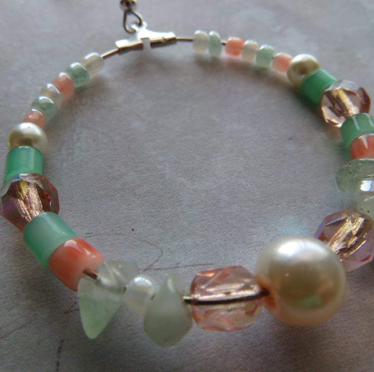 Blush Peach and Mint Green & Silver Beaded Retro Hoop Earrings