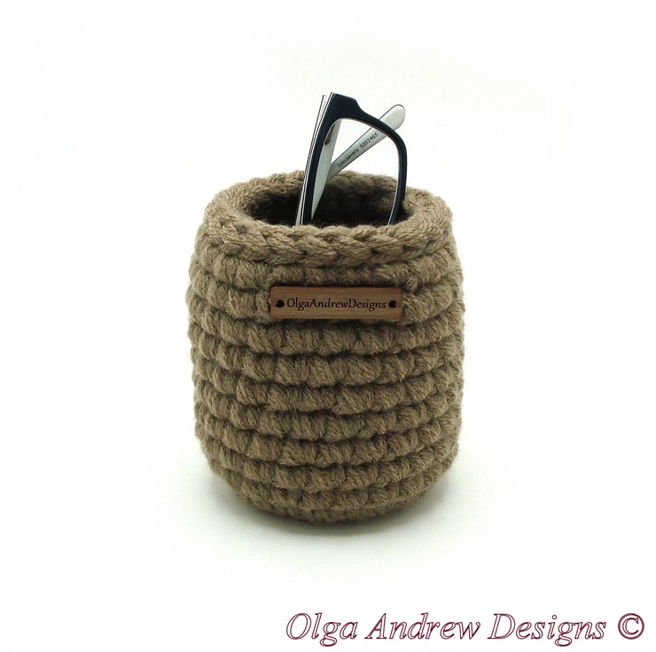This hand crocheted round small eyeglass holder stand could be very useful to keep your glasses safe and handy. The sides of the eyeglasses stand are very sturdy, strong and dense. This eyeglass storage is very practical, and you can use this soft glasses holder also as a nightstand or desk organizer. This vertical eyeglasses holder would also be a great gift for mum, dad, friends and colleagues.