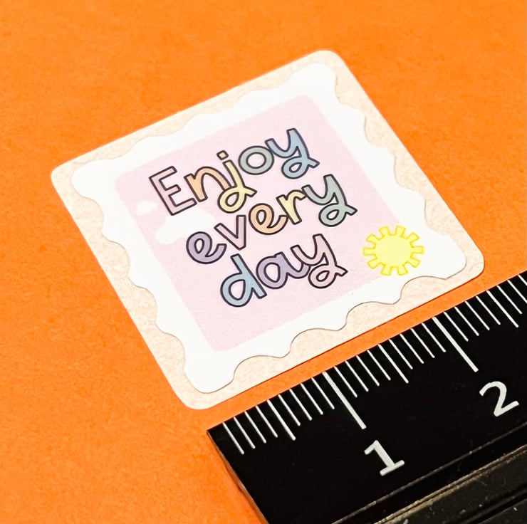 I wanted some happy reminders to brighten my day. What better format than a shiny little stamp-shaped sticker (or 5)?
