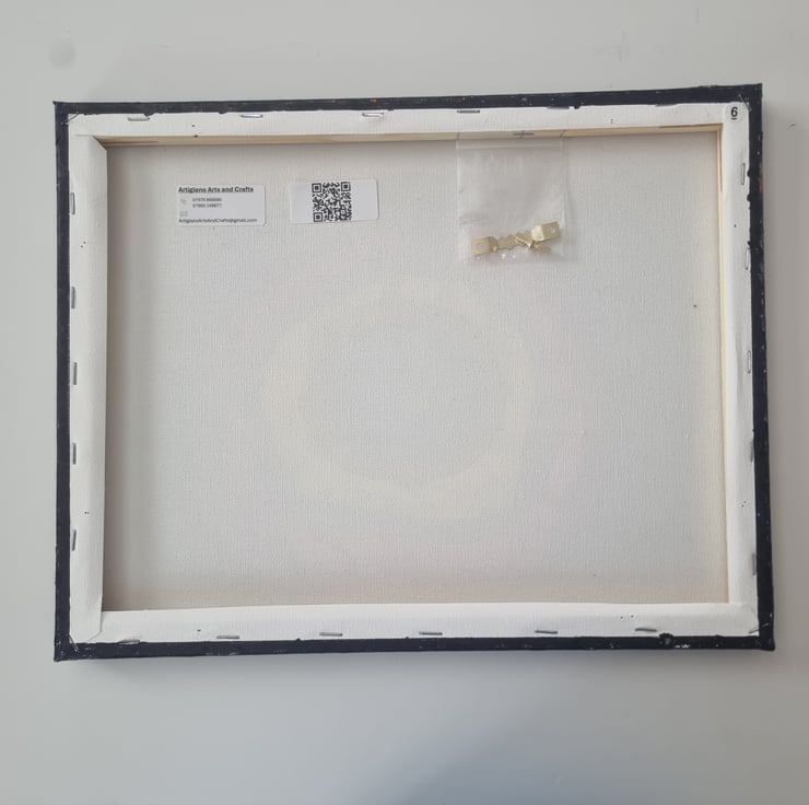 Fixings are supplied, but not fitted. The nature of abstract art is that everyone sees things differently, so you can decide how you would like your art displayed.
