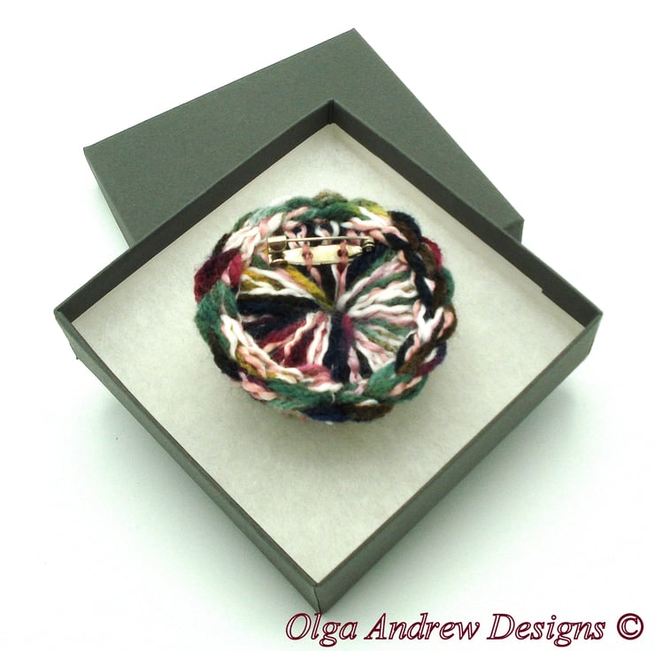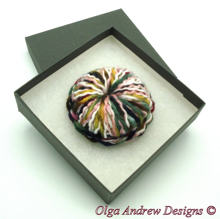 Crochet wool pin brooch, wool crochet brooch, handmade brooch wool, hand crochet round brooch, wool brooch button, wool pin brooch, soft multicolor pin, yarn art brooch, handmade wool brooch for jacket, crochet brooch for hat, soft corsage pin, crochet multicolour brooch.