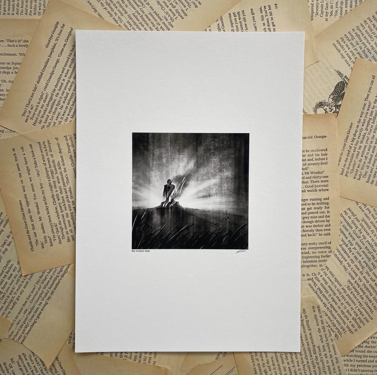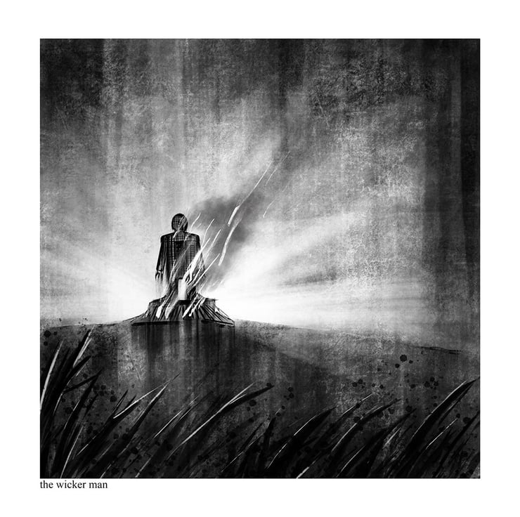 An illustration depicting the final scene from the cult folk horror film, The Wicker Man.