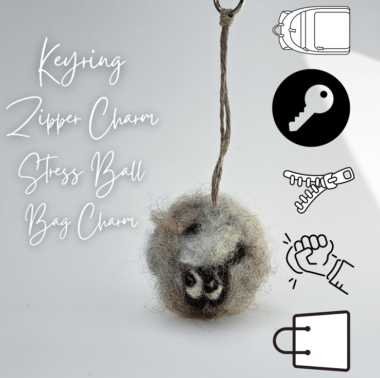 Hand-felted, not mass-produced, each one is unique. Gently rounded shape, approx. 5cm wide. Comes with a secure, easy-to-use keyring, Weather-resistant just like real sheep