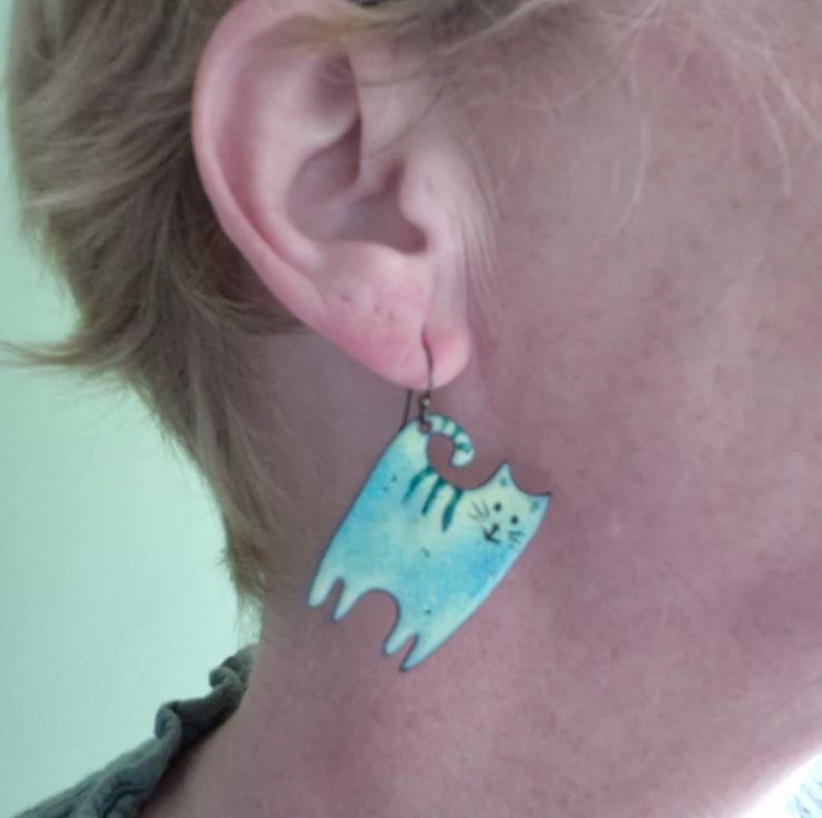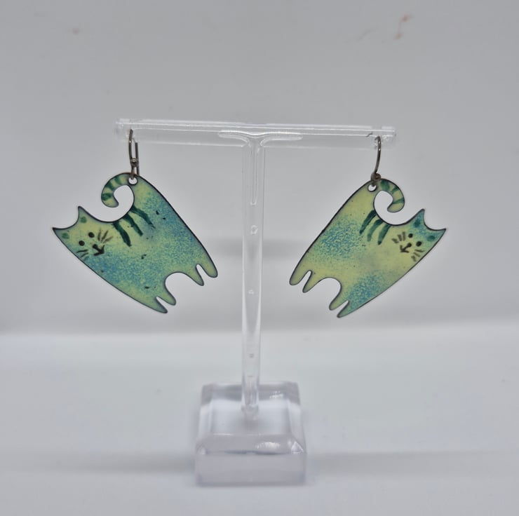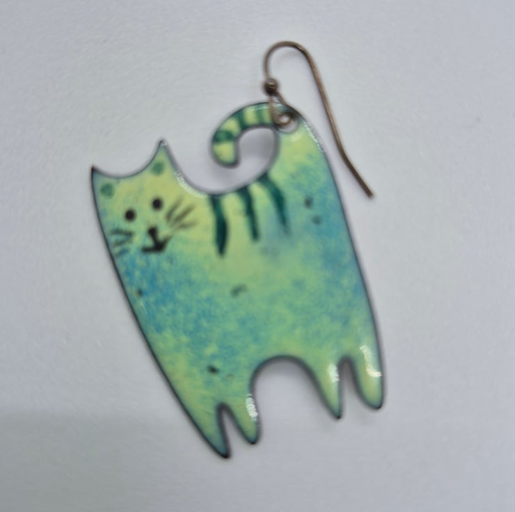 Hand made enamel earrings, each cat is unique. Perfect for dopamine dressing and cat lovers and anyone who likes something a little different from the normal.