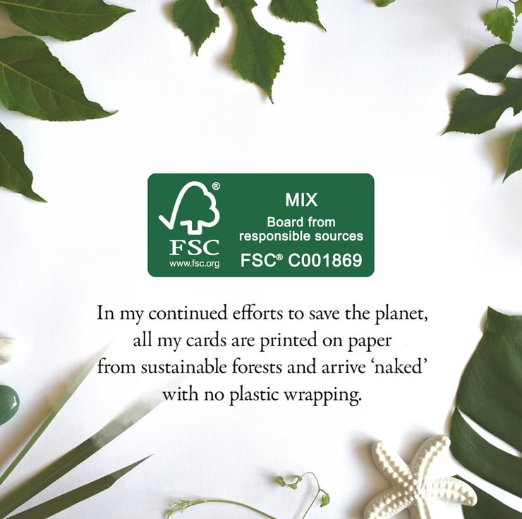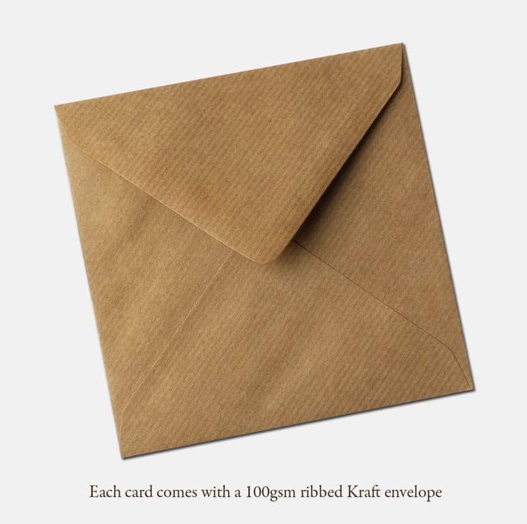 Drawn by myself, scanned, then printed onto 250gsm matt card (FSC approved) and bundled with a kraft envelope.
