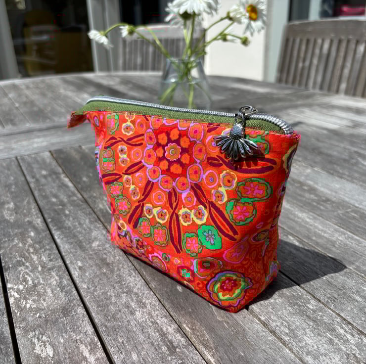 This stunning fabric makes a beautiful, lined, zip top makeup bag or cosmetic purse.