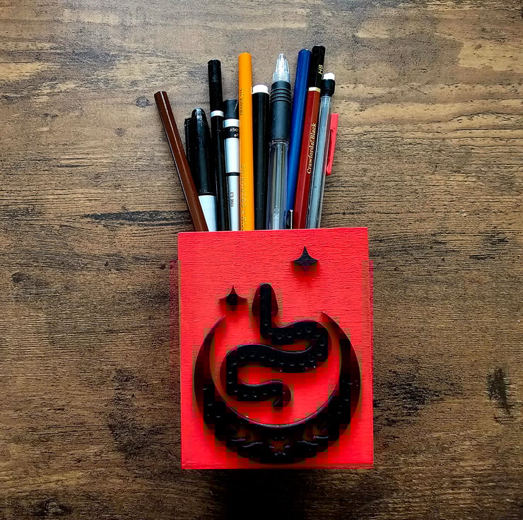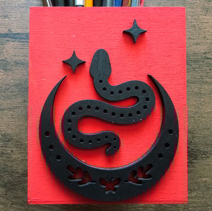 Beautiful handmade celestial snake and moon pen, brush pot or desk tidy.