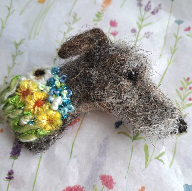 needle felted lurcher brooch,with embroidered details,approx 3 inches,metal brooch fitting to rear