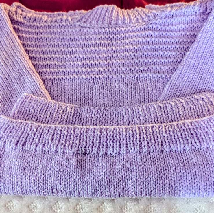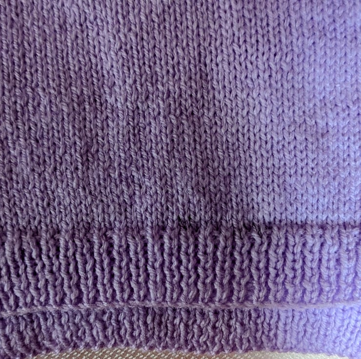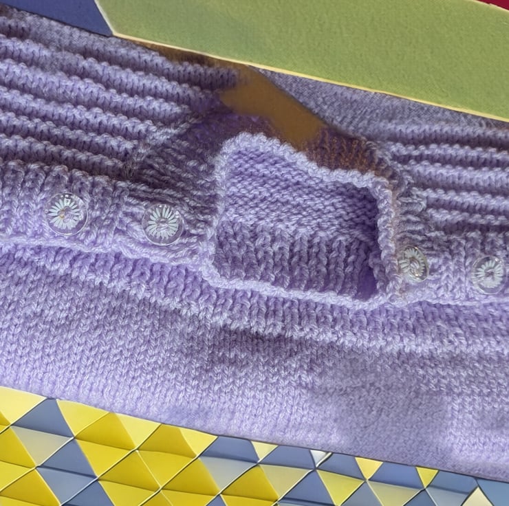 Plain but pretty. Understated little number that will bring out the sparkle in any baby girl's eyes. It is mainly knitted in stocking stitch, with a few reverse stitches on the top section. The neck line is round, but the added feature is that it has button openings on both shoulders for ease of dressing. Finished off with pretty Daisy buttons.