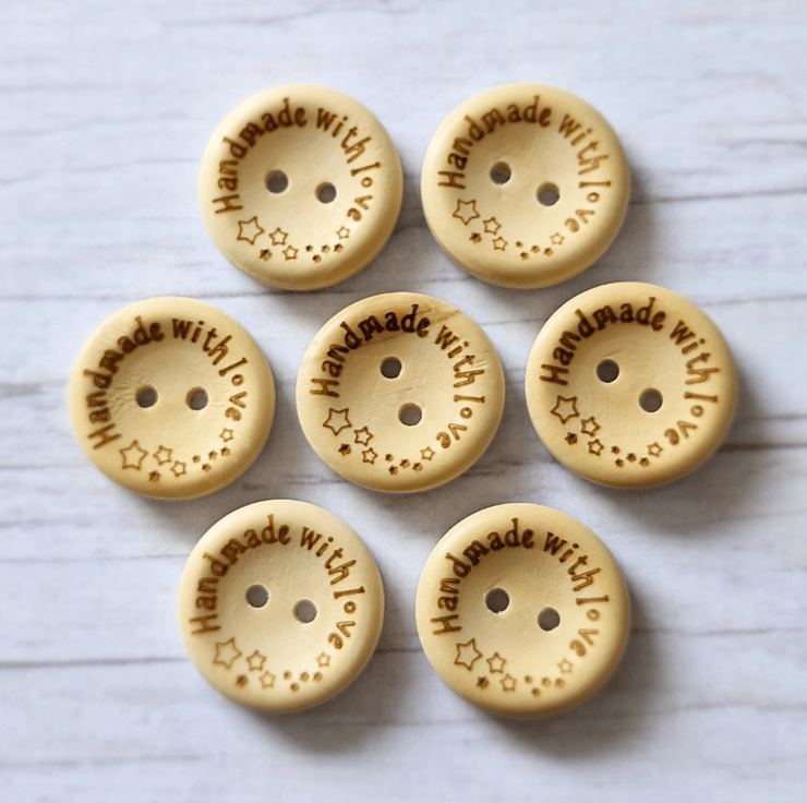 Wooden Buttons – Handmade With Love – 20mm – Sets of 7