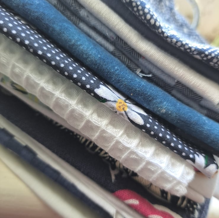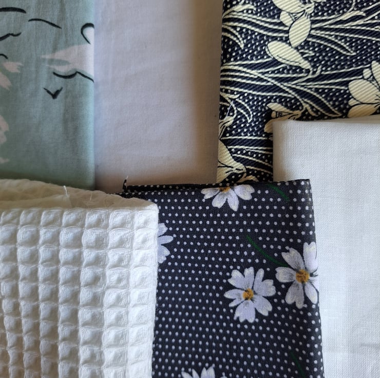 Crisp is the word that comes to mind with this bundle of clean whites and deep blues. Or classic. Or chic. The point is that the contrast between navy blue and bright white is always such a pleasingly sharp one. Seventeen pieces of cotton and linen, some plain, some patterned, all sticking with the theme.
