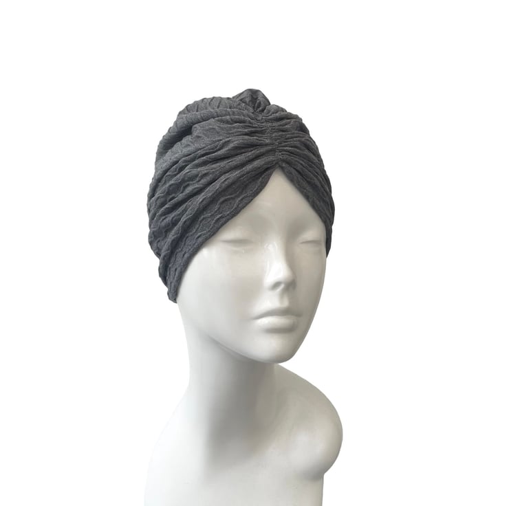 Please wash with mild detergent by hand washing or in a light load/delicates cycle on no more than 30 degrees. Lay turban hats flat to dry.
