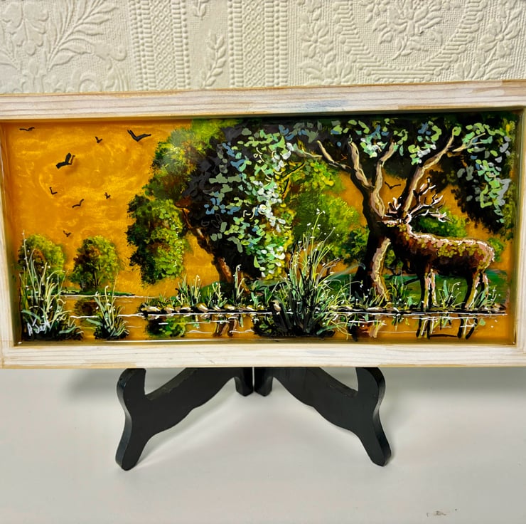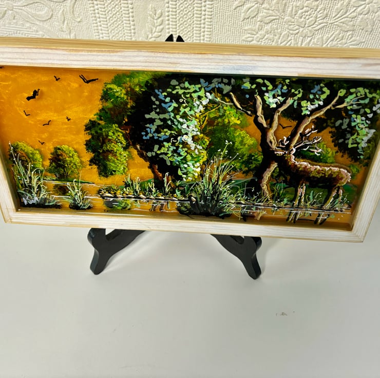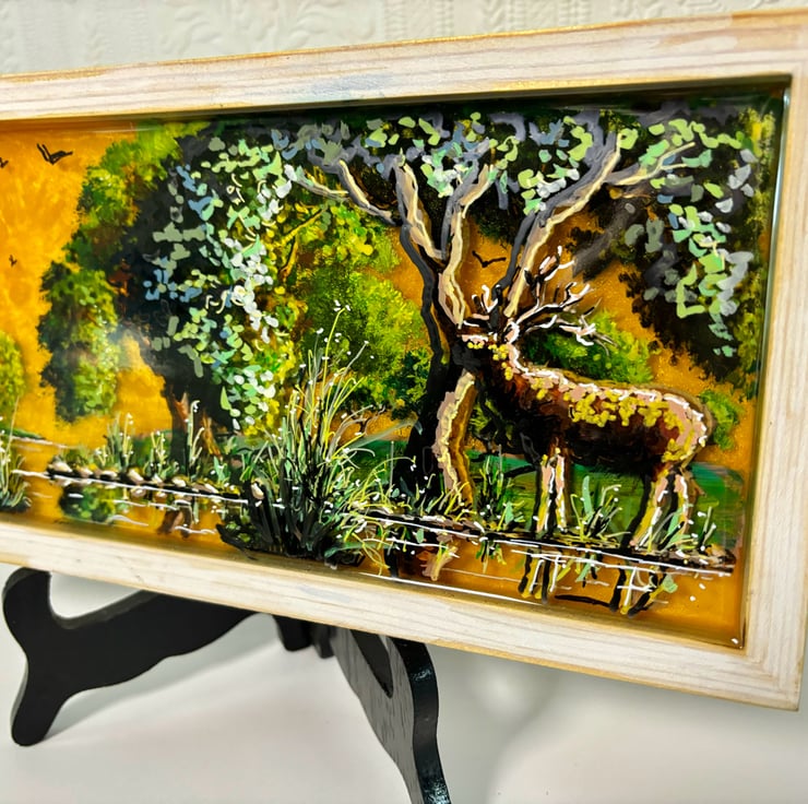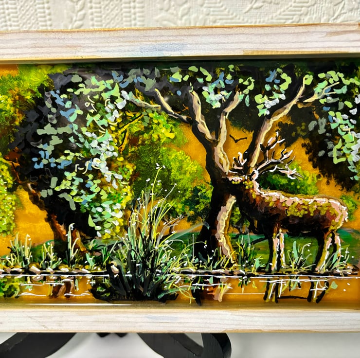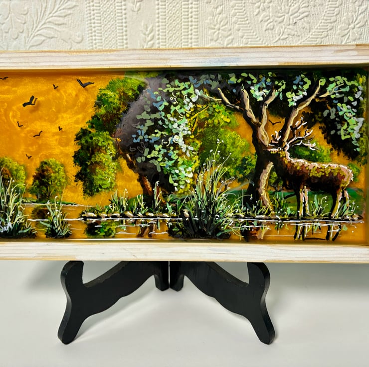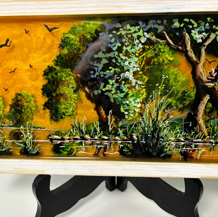 A hand painted and resin layered landscape piece by Andrew Jenkins