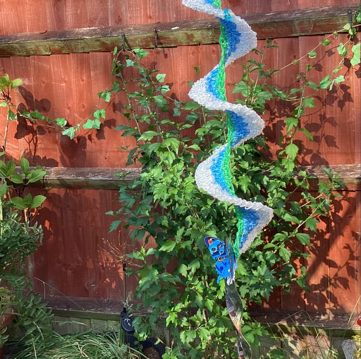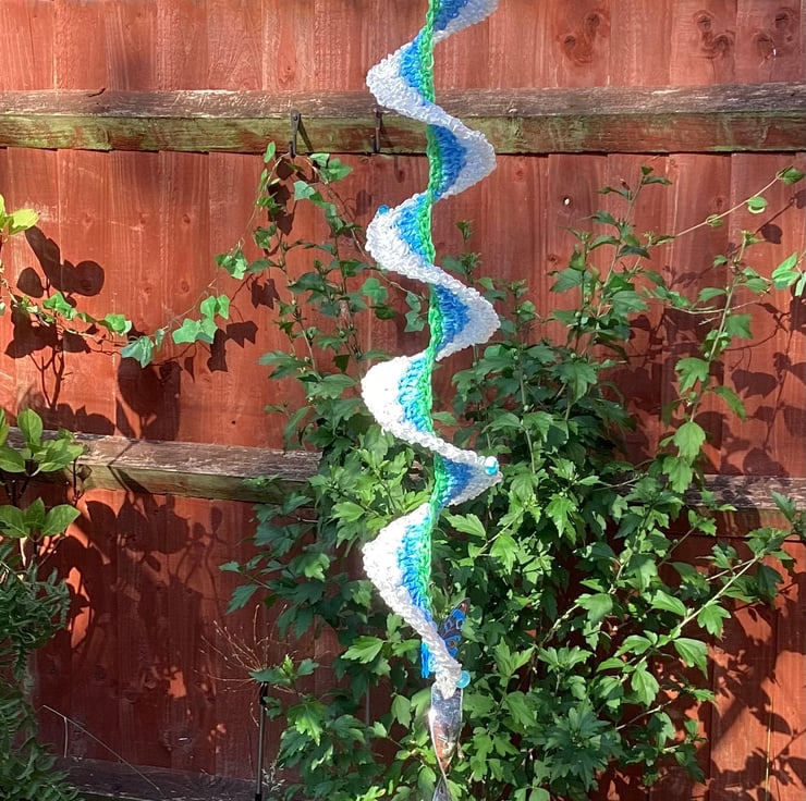 I’ve crocheted this vibrant wind spinner in my home studio in West Midlands.