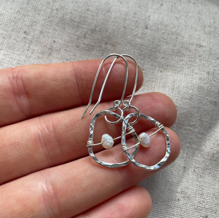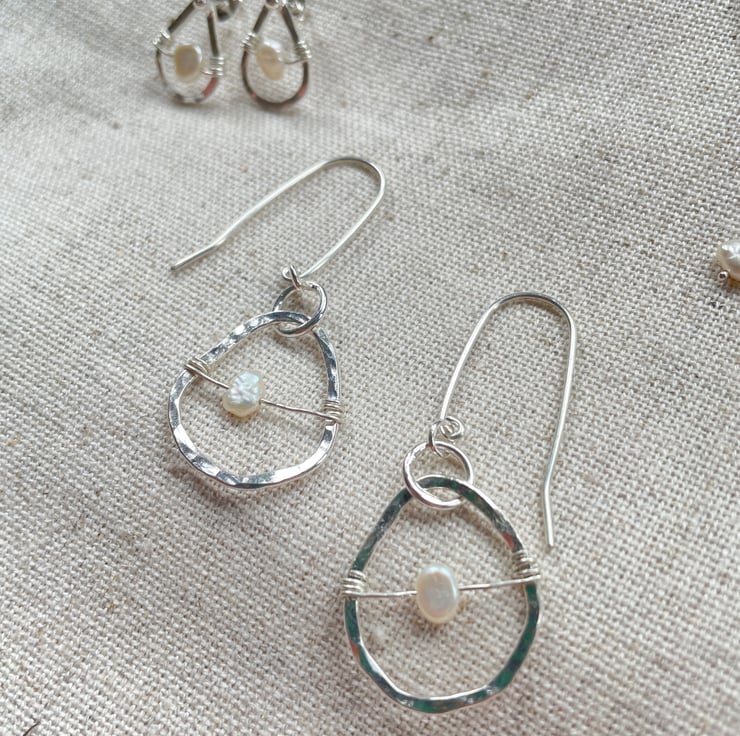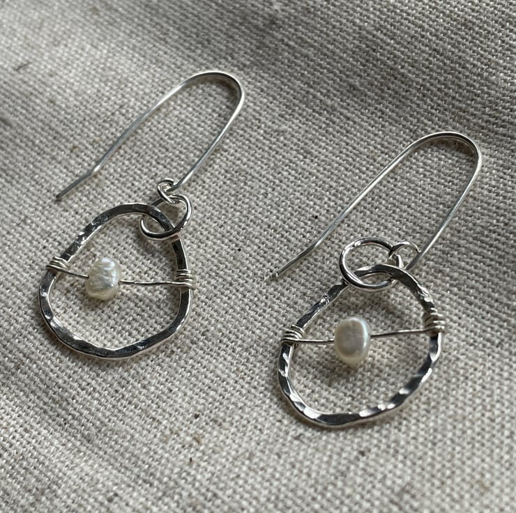Organic shaped earrings with freshwater pearls.