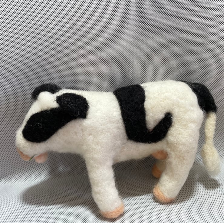 Here is my needle felted cow it is needle felted with 100% wool, with glass eyes.