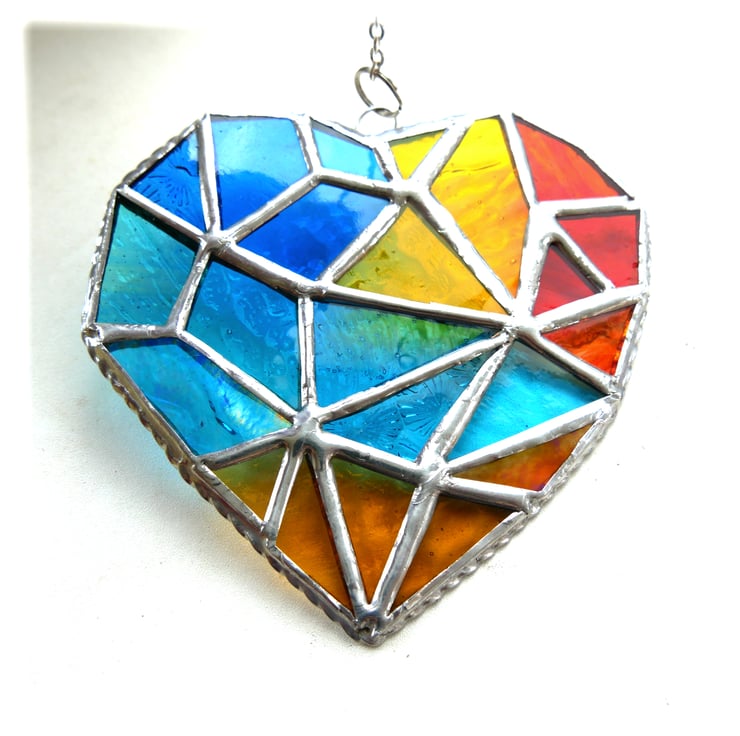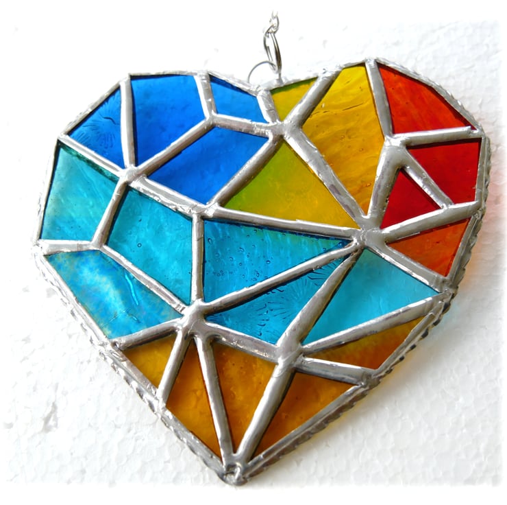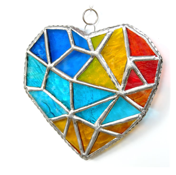 This is a stained glass suncatcher made using the Tiffany copper foil technique.