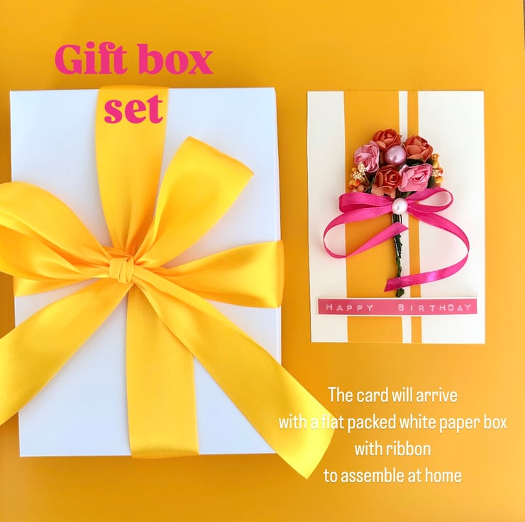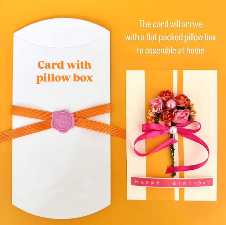 As standard your card will come blank in a glossy white pillow box with ribbon and wax seal stamp sticker for you to assembled at home to make it unique present.