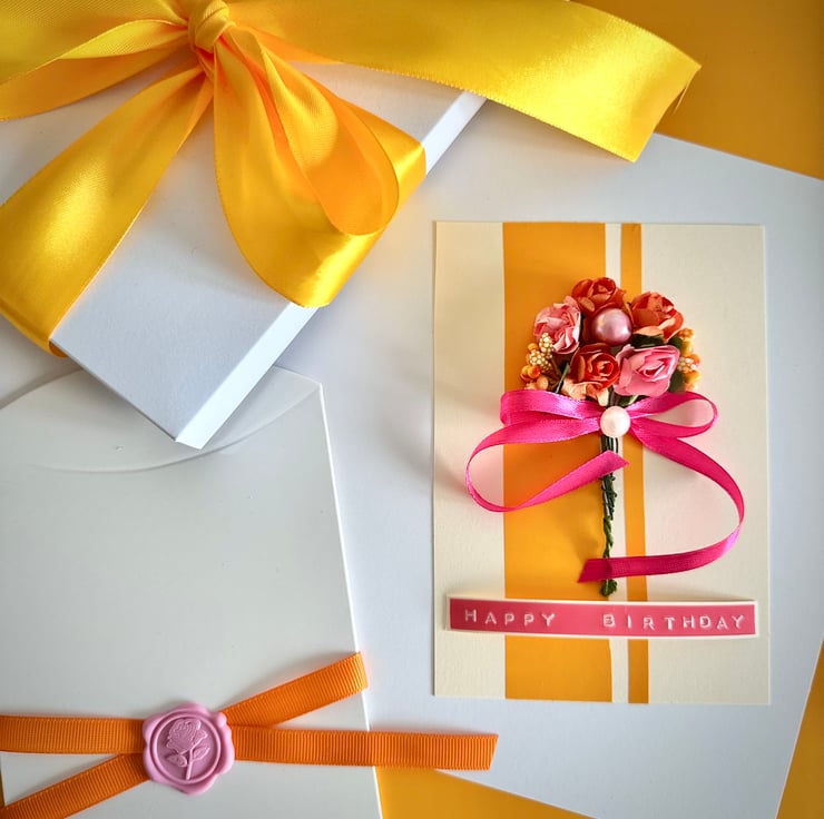Bring sunshine to your loved ones heart with this colourful handmade greetings card.