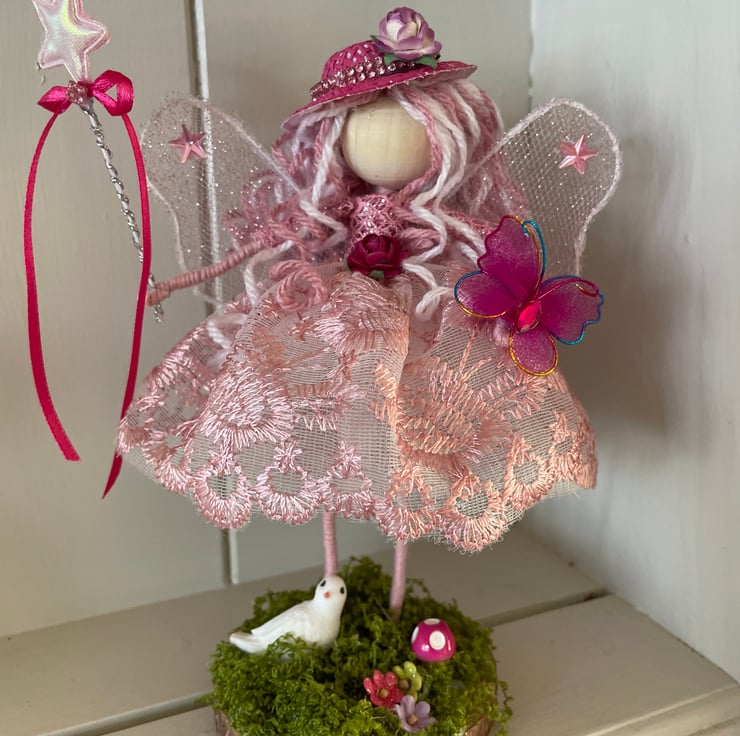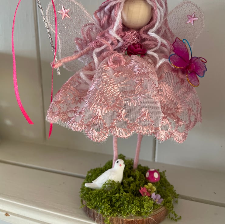 Add a little fairy magic to your home or gift to that special person with this beautiful handmade one of a kind Woodland flower fairy keepsake ornament.
