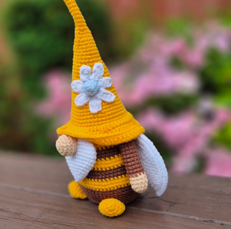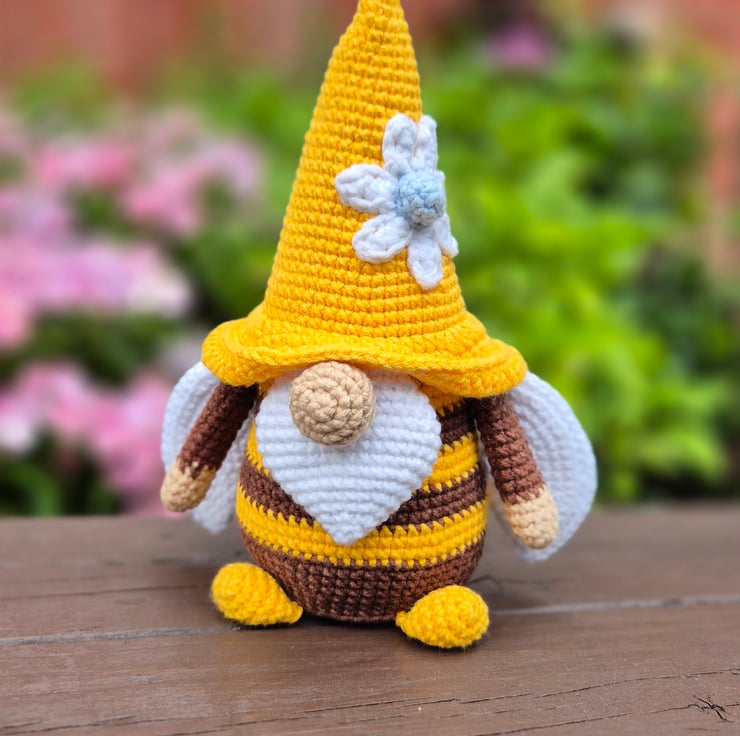 I have always been drawn to crochet gnomes they are super cute and so full of character, I was drawn to this little guy from watching the bees in my beautiful garden.