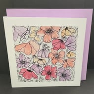 The card measures 142 x142mm and is printed on 300gsm matte card with a silk finish.The card is presented with a complimenting coloured envelope ,and protected with a removable cellophane sleeve.