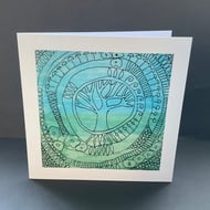 This is a design in marker pen and ink,and is blank inside for your own greeting .It features a modern swirling design in a modern abstract style The card would be suitable for a birthday,friend,relative,or as a thank you .