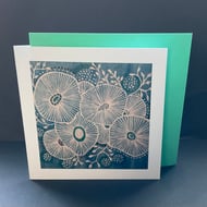The card measures 142 x142mm and is printed on 300gsm matte card with a silk finish.The card is presented with a complimenting coloured envelope ,and protected with a removable cellophane sleeve.