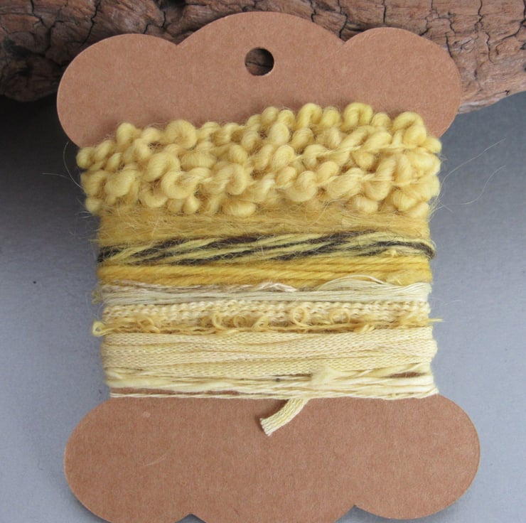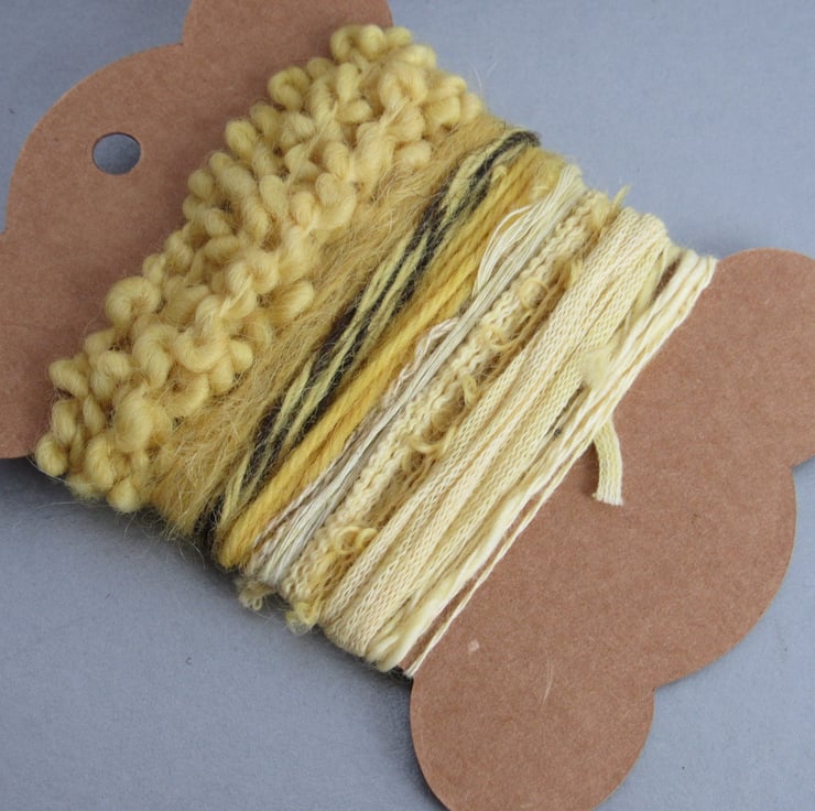 10 lengths of yarns, all approx 1m (40") long, hand dyed to a bright yellow gold with carefully prepared natural dyes from homegrown and harvested weld flowers