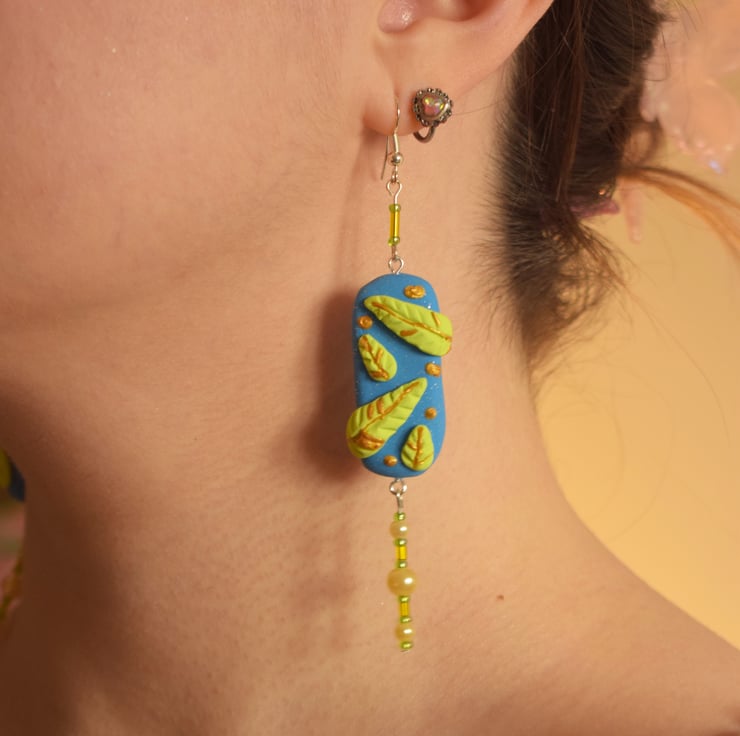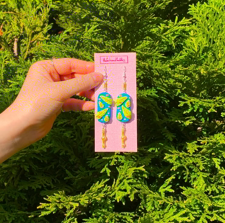 Clay Earrings - 'Leafy Blues'