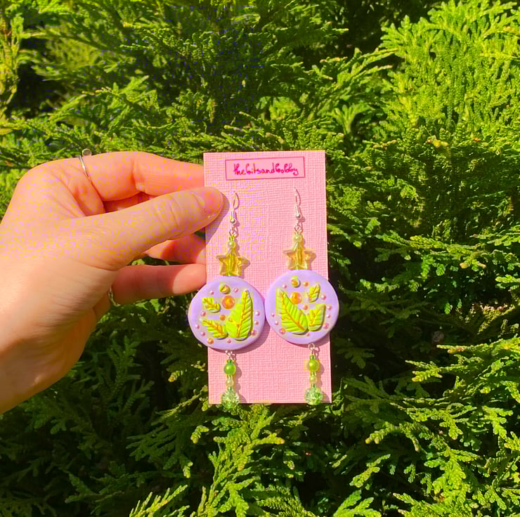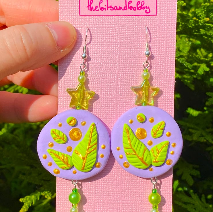Circular leafy clay earrings!