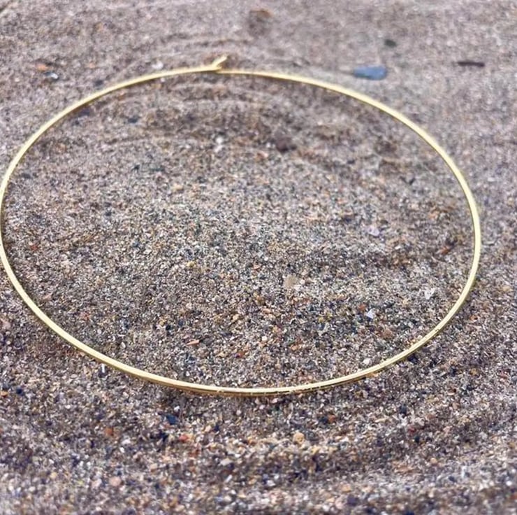 A less expensive gold plated brass version of our best selling 14k gold fill choker necklace. A stunning choker, looks great on. 15 inches in length and 1.2mm in thickness. 14k gold filled. A great alternative to solid gold when 14k gold is injected throughout the metal, not just on the top and lasts. The gold is permanent on the 14k gold filled version, this one is gold plate so please avoid contact with chemicals such as shower gel, sun cream etc. never wear in the shower on this less expensive version, . A limited edition piece where only a small number will be made. My current favourite design of mine! Wrapped in patterned tissue paper. Also now available in sterling silver.