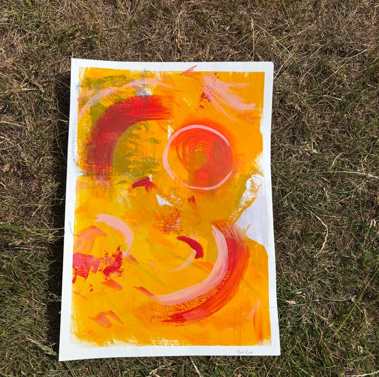 Original colourful expressive abstract on paper. Signed and dated. A3 size.