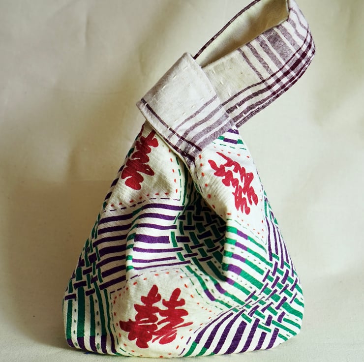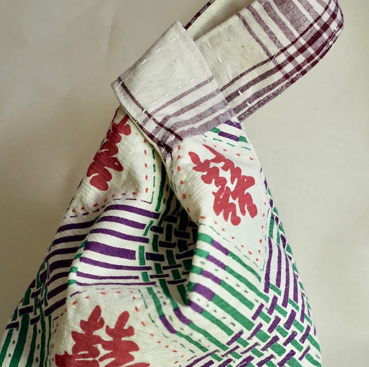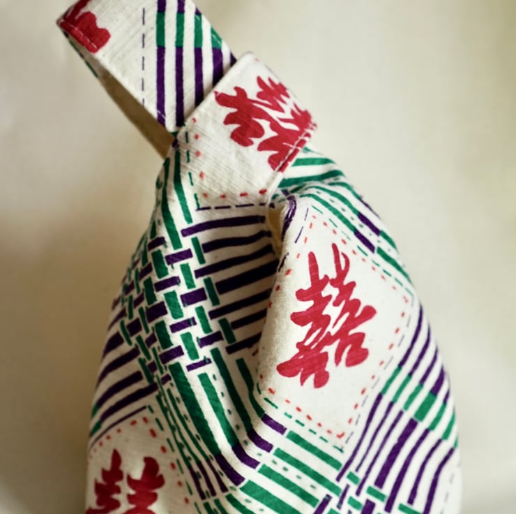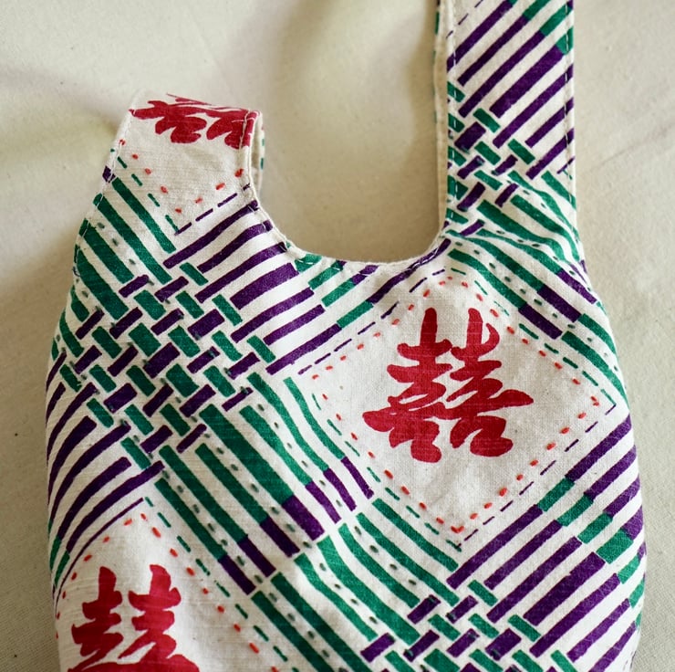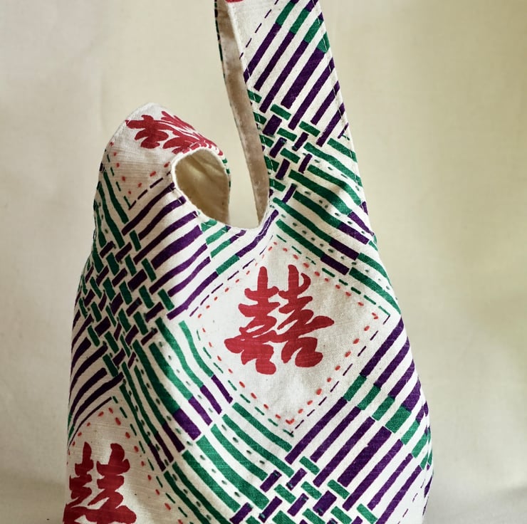 This small hand-held knot bag is made with hand-printed Double Happiness handwoven cotton — a joyful symbol often used in traditional Chinese celebrations. Paired with decorative hand stitches and a clever knot handle, it's both meaningful and functional.