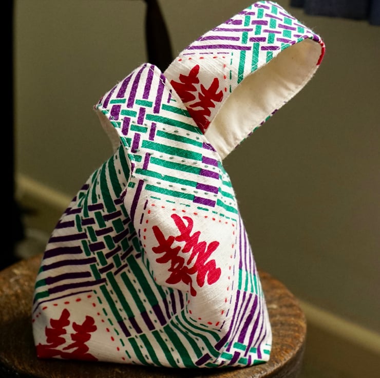 A charming knot bag handcrafted with nostalgic flair.