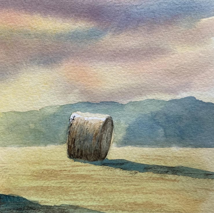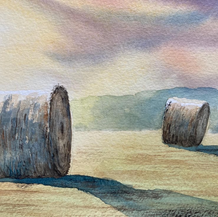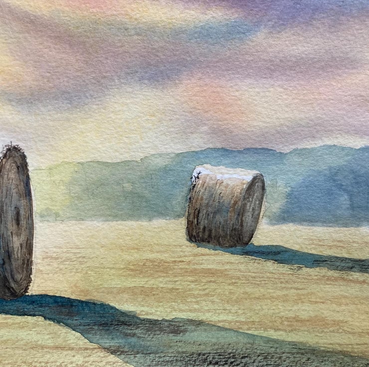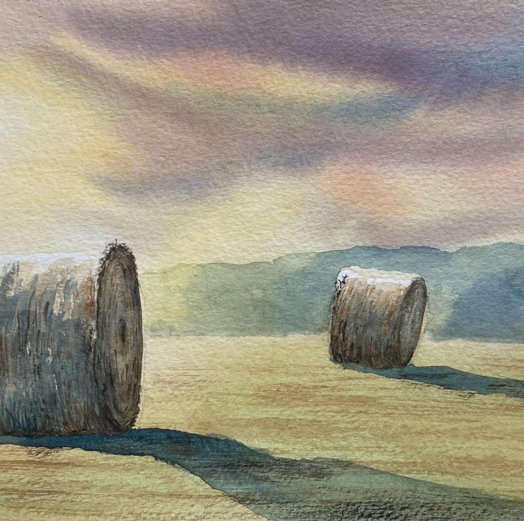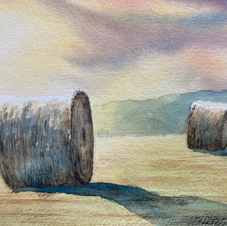 Haybales mid summer morning (Original Watercolour painting) A4 size, watercolor,